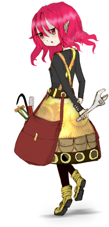 性別:女 年齢:50歳 身長:135cm 体系:細め、結構ある(胸が) 容姿:赤めのじと目、赤髪、肩くらいまでの少し先は癖がついている、身長はドワーフの平均より低め、童顔。無愛想な顔をしてるけど 性格: 口調:ですの。 好き:解体できるもの 嫌い:解体できないもの |