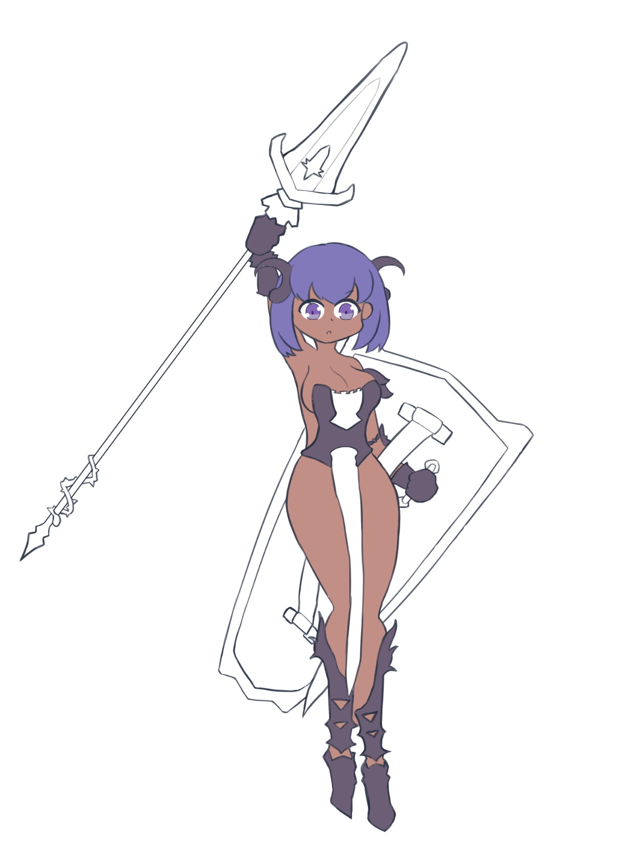 | ▼容姿 身長:178cm 髪色:藍色 瞳:菖蒲色 体型:そびえたっている 性格:ですますまっすぐ ▼経歴 「大怪我をしたことがある」「誰かを救ったことがある」「のめり込む趣味がある」 ▼冒険を出た理由 「身分を隠すため」 ▼概要 藍色の髪と瞳が鮮やかなアビスボーンの少女。濃い褐色肌の胴体には、日焼け跡のような分布で暗紫色の肌が目立つ。 呪われた武具を纏い、矛と盾を臨機応変に操る。そばに呪われた品物がないと、落ち着かないのだとか。 ウルシラ地方、スフバール聖鉄鎖公国で謳われる英雄の娘。奈落で生まれ、武器を持てるようになってからは自身も戦士となった。 成人して数度目の誕生日を迎え、ザムサスカ地方への遠征に加わらせてもらった際、凶悪な多重魔域に囚われる。 一人また一人と同行者が居なくなるなか、偶然にも見つけた魔域の核を破壊できたものの、脱出した先は見知らぬ地方だった。 公国に戻ろうにも、力が無ければ再び魔神に運命を弄ばれてしまう。そうならないよう、ひとまずは冒険者として力を積むことにした。 様々な塗料で心象画を描くことを好んでいる。魔神の血を見つけるとインスピレーションが湧くらしい。 |