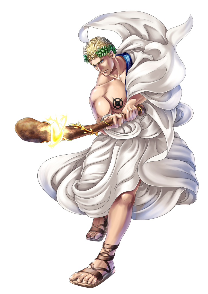 金髪くせ毛 碧眼。 月桂冠を着けており、右上半身を曝け出すゆったりとした衣服を着ている。 まるで作られたかのような肉体美を誇る。 聖印は右乳首。 |
