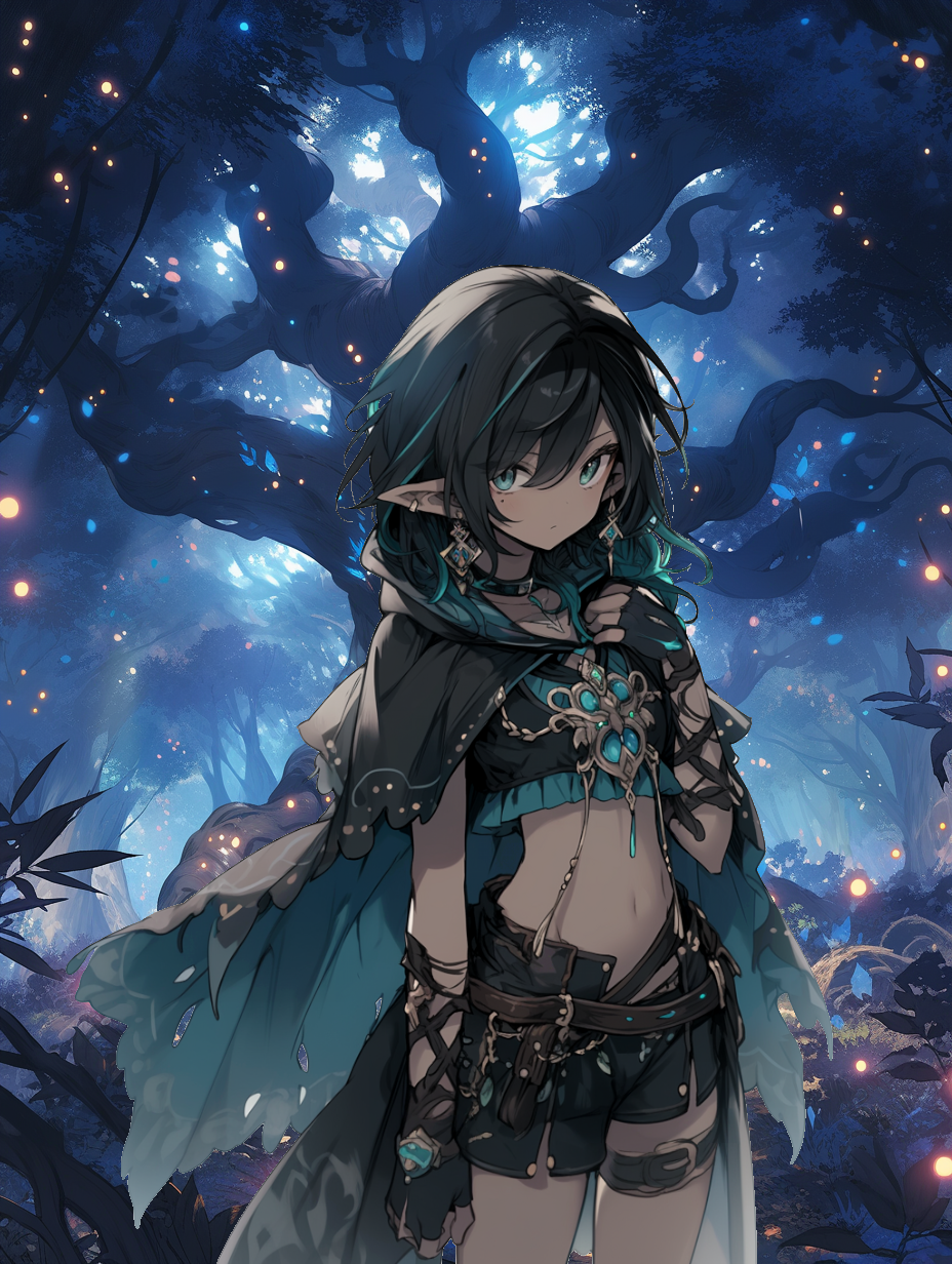 | 深い森にひっそりと隠れるように存在するミストエルフの集落の出身 特に不自由のない生活を送っていたが、何も変化のない毎日に退屈を覚え新しい刺激を求めて外の世界へとやってきたエルフ ミストエルフらしい軽装に黒い髪 翡翠色の瞳が特徴。 排他的な典型的なエルフであり、基本初対面の人間は警戒して接するが 一度身内と判断した相手に関してはお節介を焼く 身長は165センチほどでエルフとしては低身長 普段は森を案内する旅先案内人や狩人として生計を立てている。 好物は鹿肉のシチュー |