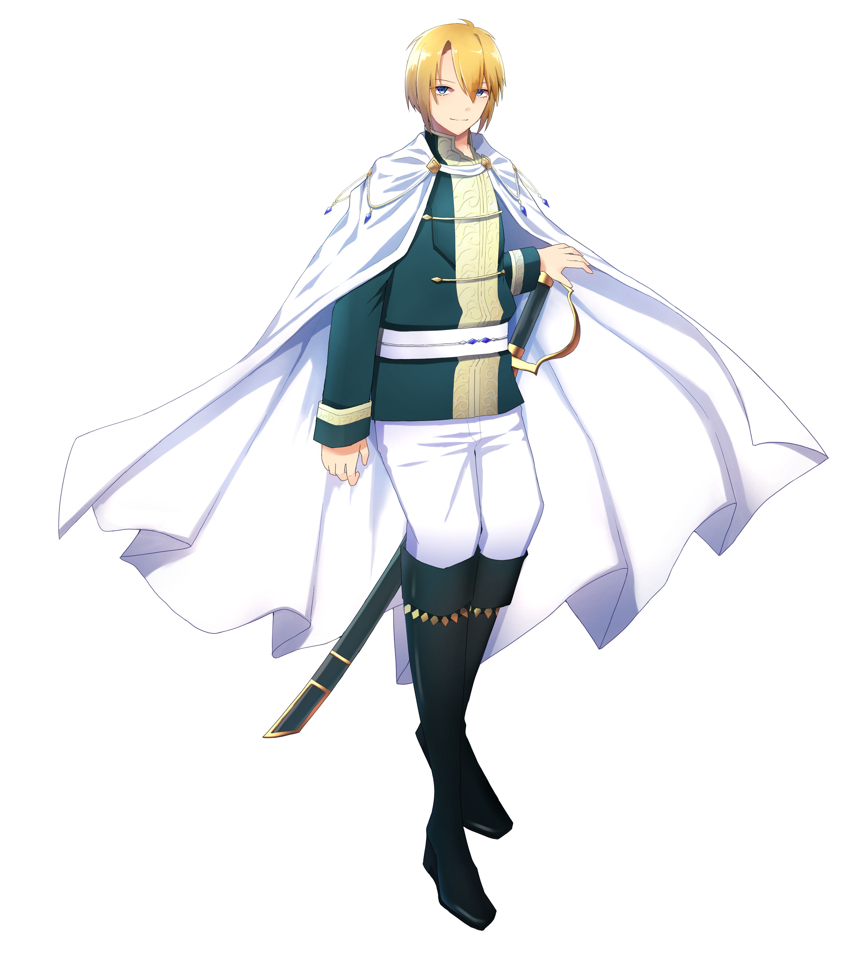 | 身長175cm、長身痩躯に柔和な顔立ちで穏やかな笑みを浮かべていることが多い。『みすぼらしい身なりでは舐められますから』と最新の流行を追うことに余念がなく、育ちの良さが出すぎてあまり冒険者らしくない。 クレイスリア王国第6王子。王族ではあるが大勢の優秀な兄姉たちがいるので玉座に就く可能性はほとんどなく、その分のびのびと育てられた。将来的にはどこかの総督か大使あたりに任じられるとされているが、若手の有望株は既に兄姉たちに引き抜かれているので脇を固めるべき家臣団がおらず、父アレクセイⅦ世に相談。最終的には昔冒険者として活動して人を見る目と信頼できる仲間を得た父に倣うことになり、現在父の古くからの友(というか悪友)であるエルヴェシウス家当主リオンの商館に逗留して活動しつつ、人材を探している。 性格は温厚で物腰柔らか。大抵のことは苦笑いまでで済ませ、怒ることは滅多にない。目下の相手にも丁寧に接するが、時折王族らしさを覗かせる。 理想を掲げ、我欲に執着することなく、理想的な王族たらんと振舞っていたが、マリーという初めて心から欲しいと思った存在により、これまでの生き方を貫けなくなる。そして互いに想いを伝え合い、伴侶として共に歩むことを誓った。 ブランブルグで過ごした日々によって一般兵程度だった剣技は最上位の騎士をも一方的に翻弄する域に達し、ランドール地方外にも勇名を轟かせる英雄に成長したことで仕えることを望む人材が集まり始め、わざわざ人材を探す必要もなくなった。いい加減帰ってこいという本国からの要請もあり、新しくできた友人たちに一時の別れを告げて故郷へと舞い戻る。…臣下ではなく、人生を共に歩む花嫁を連れて。 |