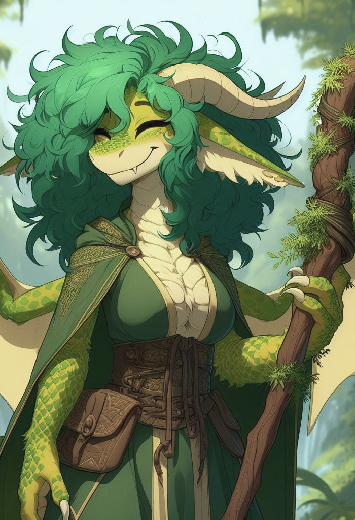 | 【容姿】 身長222cm、体重普通、ブロッコリーのようなもっさりとした鬣が特徴的な、黄緑色の鱗を持つリルドラケン。 【経歴】 ランドール地方のどこかにある、地図にも載っていない集落の出身。 自然を偉大なものと崇めるドルイドが多く住む小さく素朴な集落で平穏な日々を送り、 平易な森羅魔法を修めながらのんびりと成長を重ねる。 そんなある日、集落がアンデッドの襲撃に遭い、撃退はできたもののフラッカは瀕死の重傷を負う。 今にも事切れようかというその時、ダリオンからの声を聞いたことでプリーストとして目覚め 自らの回復魔法によって一命を取り留める。 自らの力不足、そして何よりこの世界に不条理な暴力が満ちている事を痛感したフラッカは、 もっと力をつけたいと、集落で共に過ごした友人(メリア長命種、180歳程)に相談をする。 彼の答えは次のようなものであった。魔境と呼ばれる一帯の中心に、ブランブルグと呼ばれる都市がある。 その都市の周囲は荒事が多く、そこで冒険者として働けば実戦の中で魔法の腕が磨かれるのではないか――と。 それを聞いたフラッカは、早速出立の準備に取り掛かった。 のんびり屋のフラッカが死地に赴くことを止める者は多かったが、彼女の決意は固かった。 不条理な暴力に苛まされる者を救えるようにならなければ……と。 経歴1:「大怪我をしたことがある」 経歴2:「過去に仕えた主がいた」 経歴3:「年の離れた友人がいる(いた)」 冒険に出た理由:「友達に勧められて」 -------------------------------------------------- 【よく使う能力】 神聖魔法・バフ系: 【フィールド・プロテクション】MP2/半径3m(5体まで)/術者/一瞬/3分/必中/物理・魔法ダメージ-1点(毒・病気・呪い属性はダメ) 【フィールド・レジスト】MP5-1/半径5m(15体まで)/術者/3分/必中/指定属性の物理・魔法ダメージを-3点。宣言できる属性は「火」「水・氷」「土」「風」「雷」「純エネルギー」 【セイクリッド・ウェポン】MP3/一体/30m/起点指定/3分/任意/蛮族orアンデッドに攻撃する際、対象の命中力判定に+1、与物理ダメージ+2 【セイクリッド・シールド】MP4/一体/10m/起点指定/3分/任意/蛮族orアンデッドからの被物理ダメージ-3点。 神聖魔法・回復系 【キュア・ウーンズ】MP3/一体/10m/起点指定/消滅/対象のHPを「威力10+魔力」回復。魔法生物・魔動機には無効。アンデッドにはダメージ。 神聖魔法・攻撃系 【フォース】MP4/一体/10m/射撃/半減/衝撃/「威力10+魔力」ダメージ/C値10 神聖魔法・デバフ系 【バインディング・ソーン】MP5/一体X/30m/起点指定/短縮/30秒/ 対象の命中and回避-1。達成値で5以上上回ったら効果時間を3分に延長(自動成功時は+5ルール適用、対象が自動成功したら短縮) 森羅魔法: 【⏩△ウィングフライヤー】MP3/1体X/10m/起点指定/飛行能力を与え、近接の命中and回避に+1。 賦術: ⏩【ヒールスプレー】緑*2/1体/30m/射撃/一瞬/任意/HP回復(3/10/20/50) 【メモ】 補助動作山盛り系プリ。 プリ>ドルイド>ケミ 賢者とか軍師って柄じゃないのだ |