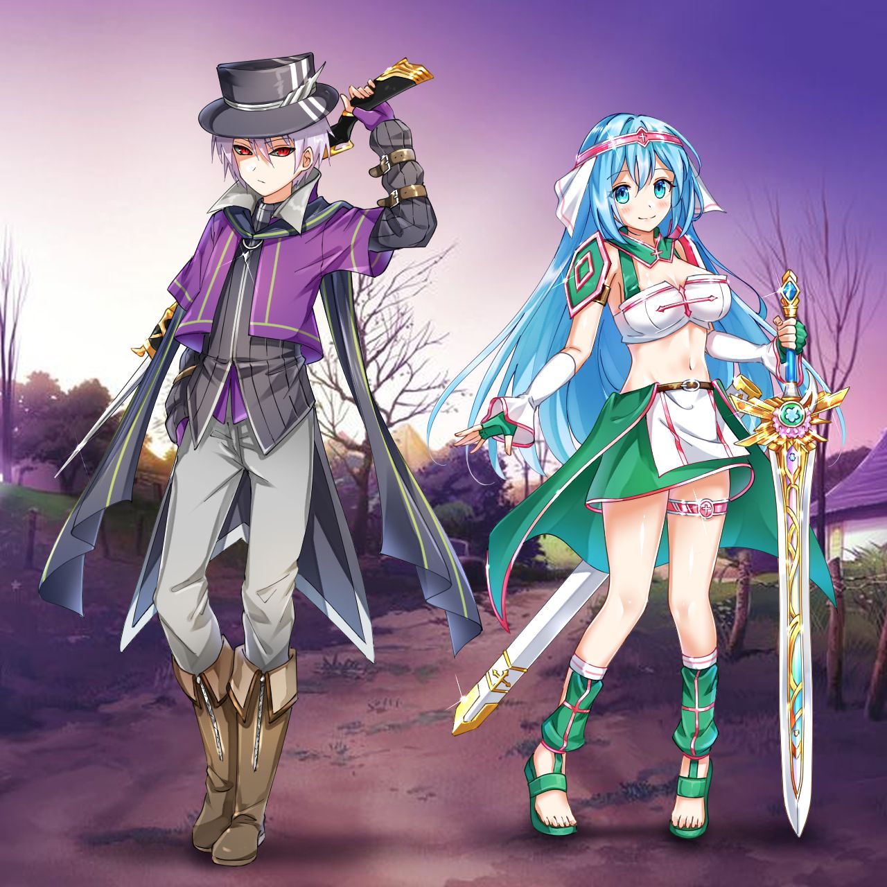 大画像はロシュメルとのツーショット。いずれも原著作権は作成していただいたクリエーターRyuka様(ポートフォリオ用Twitter「@Ryuka1229」)に、使用権は購入した発注者(ゆうなぎはるな)に帰属します。背景はフリー素材使用(しじみのおすまし様作) |