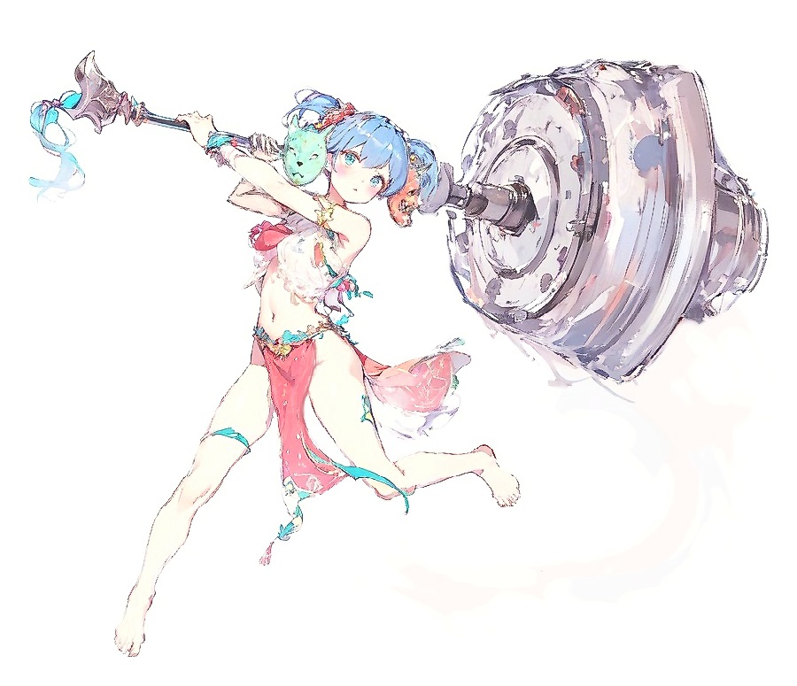 | ■物語 前よりも踊るのがつらくなったけど、そのぶん練習を重ねればいいだけ。 為せば成るんだから。悩む暇があったら、がんばり続けるしかないんだ。 ■人物 踊り子の少女。紺色のツインテール、頭の左右に吊るされた鬼面と猫面。 片肺を失っているため、わりとすぐにぜーはーいうが、体力自体はある。 小柄な肢体と身軽な舞踏衣装に反して、巨大なメイスをブン回す。脳筋。 ■背景 ハルシカ商協国の生まれ。傭兵上がりの父が営んでいる道場の跡取り娘。 リルドラケンのように翼や尾を用いる技を学び、踊りにも活かしていた。 しかし、興行の道中で蛮族と戦った折、胸に深手を負い、左肺が潰れる。 以来、息が乱れやすく、練技のほとんどを発揮できなくなってしまった。 ――それでもめげず、後継こそ別の門下生に譲るも、踊り子の道を選ぶ。 ハルシカの芸能に詳しく、他の踊り子の補佐にも慣れている。でも脳筋。 ■経歴 生まれた環境:[一般的な町人(都市)] 経験:[訓練の日々][無意識の特別な呼吸][手は抜かない] ハプニング:[舞台に憧れた][あちこち旅をし、知見を広げた][大怪我をした] 冒険に出た理由:[自分の力を試したくて] 信条:[努力:肯定][絶望:否定] 矜持/執着:[恩義を忘れず、借りは必ず返す] |