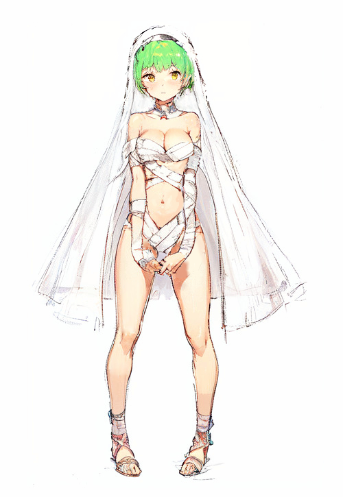 緑の短髪、黄の瞳。白いヴェールを被った、しなやかな肢体の少女。