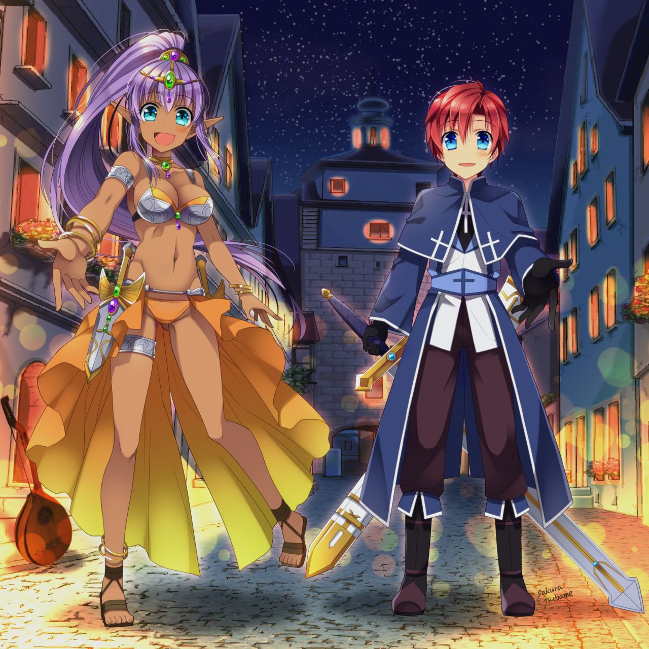 | [以下詳細な設定] サーニャの育った娼婦館は、遺跡ギルドとは無関係の公営の娼婦館。そのためシーンやアステリアの信仰も厚い。 母親はその娼婦館の娼婦で店長を勤めているウィザード。父親はマカジャハットの大臣の側仕えの役人らしいが心当たりが多すぎて不明。 そんな中、サーニャ自身は踊り子で有名になる事を目指し、(やや如何わしい所もあるが)魅力的な踊りを一通りこなせるようになった。 母親譲りの魔法の使い手で、ソーサラーが一番得意、フェアリーテイマーは娼婦仲間の友達から教わった。 また、踊りの中で剣舞の一環としてフェンサー技能を、演目の参考にと言う点で(キャラメイク時は未修得だが)バード技能の基礎も学んでいる。 【追記】 2019/07/23『雨の森に映える泡の華』にて、かつての二つ名が『輝きの踊り子』と呼ばれていたと思い出す(『あなたがあなたに気づく表』の結果)。これは実家の娼館での踊りの際に、太陽のように明るいライトの魔法を多用したり、その性格的明るさや太陽オイルみたいな魅力を上げる美肌オイルなどで自分の魅力をさらに輝くようにしていたためだとか。 2020/10/26『☆6』のセッションにて、フィオ・シルバーアックス(PL:mssn1210さん)と、踊りを通じて仲良くなり、大切な友人となった模様。 【アボート印】:『ソーサラー技能レベル』個までに注意(なるべく空きは二つ用意すること、対応アイテムには★で表示) 踊り娘のマナビキニドレス、カトレアの花冠、正しき信念のリング、華美なる宝石飾り、ラル・ヴェイネのマナリング 幸運のフェザーサンダル、サーマルマント、ファミリア・鳥、日輪のバックル、、 【初期購入品】初期所持品3000ガメル 武器:ククリ(60G)、ダガー(50G) 鎧 :クロースアーマー(15G) 盾 :なし(0G) 装飾品:能力増強の指輪<知性の指輪>(500G)サークレット(20G)アンクレット(20G)宝石ケース(100G) 道具:冒険者セット(100G)毛布(40G)羽ペンとインク(5G)白紙の本(30G)羊皮紙(5G)着替え(10G)ビキニの水着(20G)防寒着(80G) 消耗品:保存食(1週間分)(50G)保存食(1日分)3つ(30G)ヒールポーション(100G)アウェイクポーション(100G)魔晶石3点(300G)魔晶石5点(500G)魔香草(100G)救命草(30G) 発動体:ククリに発動体付与(100G )宝石6属性<レベル1~2>セット(300G) あまり 335ガメル 【あなたがあなたに気付く表(アステリアからの問いかけ?)】 (冒険者レベル上昇後に参加した最初のセッションで決定予定) LV3:「座右の銘は?」→「人生楽しければ全て良し!」 LV4:「この世で最も酷いことは?」→「虐殺」 LV5:「生まれ変わるなら何がいい、それはなぜ?」→「今と同じ様な人族としての人生、やっぱり楽しく生きられる今の人生が好きだから」 LV6:「未来の自分に届けたい言葉は?」→「周りの人の助言はしっかり聞くこと!」 LV7:「心から信じる/守りたいものは?」→「共に冒険した仲間達の力」 LV8:「かつて呼ばれていた二つ名は?」→「輝きの踊り子」 LV9:「君にとって冒険者とは?」→「いろんな意味で好奇心旺盛で前向きな人の事と思う」 LV10:「もっとも影響を受けた物語の名は?」→「ちょっと夜の話が絡む冒険物語、名前は知らない」 LV11:「今でも忘れられない辛い思い出は?」→「踊りを始めて踊った時の下品な客の罵声(スケベな要求とか)、踊りを見てもらえなかったことがつらかったわ」 LV12:「」→「」 LV13:「」→「」 LV14:「」→「」 LV15:「」→「」 LV16:「」→「」 LV17:「」→「」