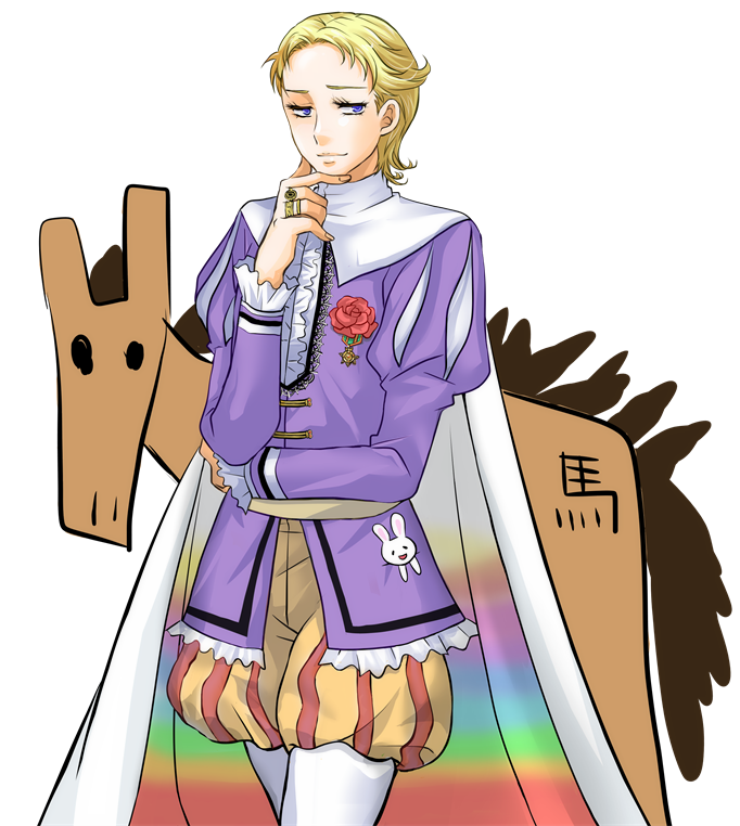 金髪の豊かな青年、遠目にもよく目立つ服装
