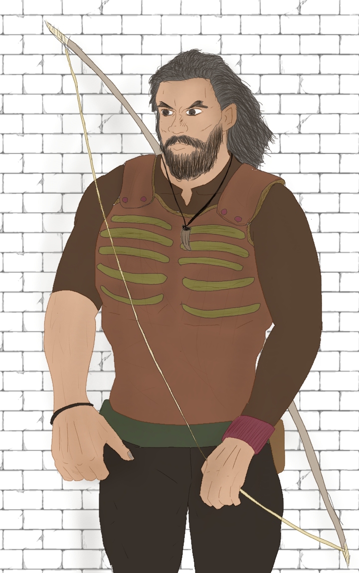 | 弓を引く右手が発達している 髪:黒 肌:浅黒い 眼:黒 身長:220cm 体重:130Kg 性格:誠実、世間知らず、頑固 一人称:俺 二人称:お前 信仰:ダリオン 好き:孤独、狩り、珈琲 嫌い:騒がしい場所 |