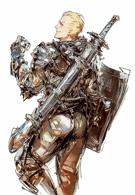 | ■経歴 [何かの大会で優勝したことがある][何かの大会で優勝したことがある][身体に傷痕がある] ■冒険に出た理由 [最強の存在になるため] ■人物 縦横に古傷の残る、鍛え上げられた体躯。短く刈り込んだ金髪。 顔立ちは平凡で、身形も一般的な冒険者の装備といったところ。 魔法や練技を頼らない、戦士系技能のみによる強さを追求する。 ■背景 剣と拳のいずれを修めるか師範に問われた男は「両方」と答え、 道場に居合わせていた門下生達から数多の失笑と怒声を浴びた。 男は三年間、黙々と鍛錬し、両大会で勝利を収め度肝を抜いた。 男は傲慢だったわけではない。ましてや名声を欲してもいない。 共に極めればどうなるか。男を動かすのは、その興味といえた。 |