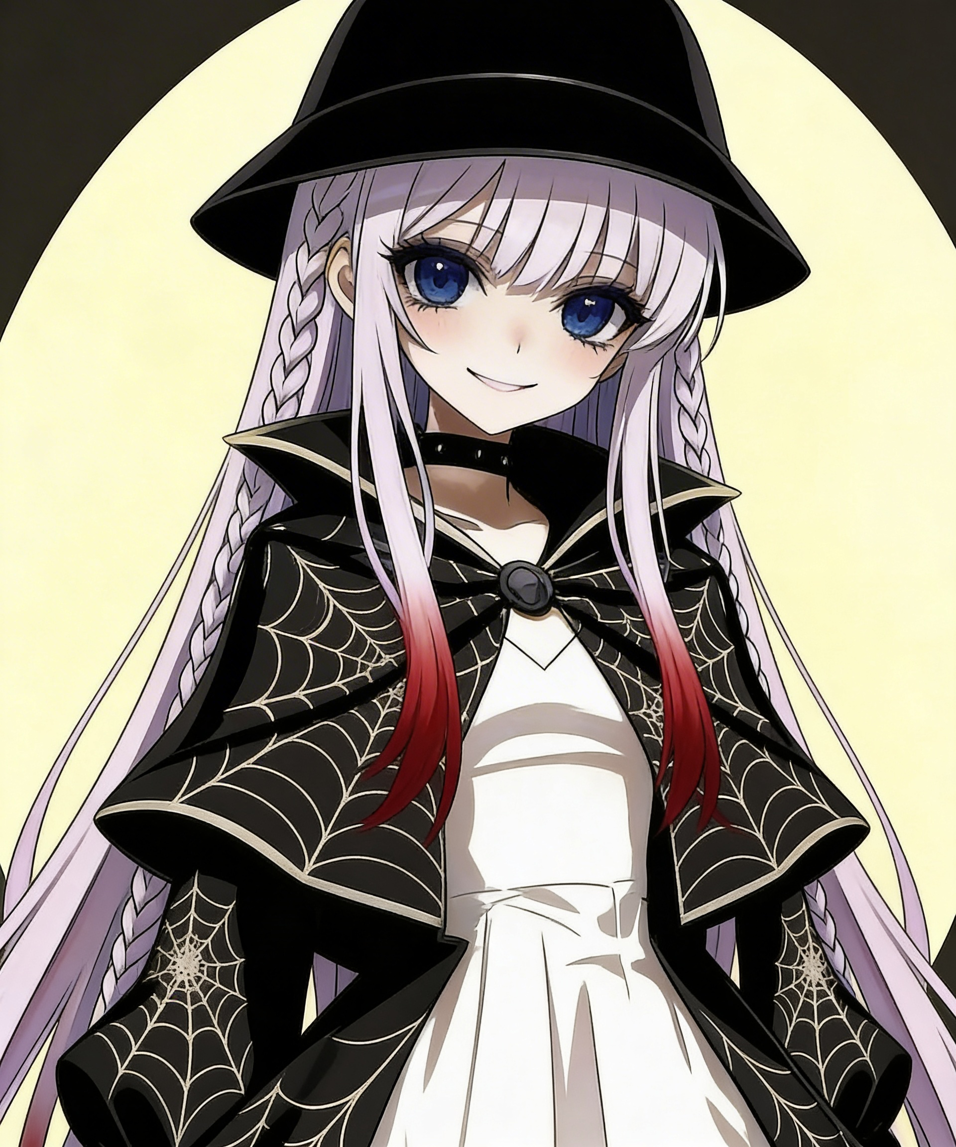 | 【序文】 かつて「フラン」と呼ばれた少女は、13歳の日に死んだ。 脳内に嵐のように吹き荒れる亡者の叫び、神への呪詛、愛の飢え。 それらすべてを「他人事」として処理するため、彼女は自身の心を空っぽの箱へと作り変えた。 今、その瞳に映るのは希望にあふれる世界ではなく、絶望を必要とする舞台。 彼女が口にするのは諦観と絶望と禁忌と、少しの期待と希望と愛。 【性格・外見】 0. 性格・口調 掴みどころがなく、陰気さと陽気さが同居する。 常に数歩先を見通しているような超越的な振る舞いだが、その実、内面は空虚。 対象を観察物として見る傾向がある。 後述の経緯により、一般的な常識情動に(あるいはわざと)欠ける面がある。 一人称は「ボク」。 1. 身体 異常なまでの痩せ形。 13歳という年齢に対し、発育不良により痩せ気味な11歳女子ほどの身長・体重しかない。 その痛々しいほど細い体躯は、前世の記憶という「質量」を支える代償のようにも見える。 2. 髪 膝まで届く藤色の長髪。 生まれつきの色だが、先天的な召異魔法の魔力に長年晒され続けた影響で、毛先が鮮やかな赤色に染まっている。 摩滅した自我の中で数少ない「こだわり」として、サイドの髪を複雑な三つ編みにし、毎朝自分で結い上げている。 3. 瞳 闇か虚無を思わせる、底知れぬ深みを持ったダークインディゴ色の瞳はまるで人形のよう。 気まぐれな性格ゆえに表情はコロコロと変わり、ニヤついていることが多いが、笑顔の時でも「目だけは一切笑っていない」。 4. ファッション・お気に入り パーソナルな情動の大半を失った彼女が、わずかに執着を示し、「気に入った」として常に着用しているファッション類。 他の衣服においても、黒系を基調としたコーディネートを好む。 黒いバケットハット:退屈へのいらだちや本性を隠すかのように、深く被っている。 サングラス:彼女にとって今の世界は「賑やかで眩しすぎる」ために、ほとんど常に着用している。個にとって無限ともいえる量の絶望の記憶を持つ彼女の瞳には、現世の光や希望はあまりに過剰であり、眩暈を覚えさせる。もしサングラスがなければ、世界の眩しさに判断を誤り、世界を(良かれと思って)壊そうと暴走をはじめかねない。 蜘蛛の巣柄のショートコート:黒地にゴールドの蜘蛛の巣が張り巡らされた複雑なデザインのコート。13歳の誕生日に蜘蛛の死骸を見て覚醒した彼女にとって、蜘蛛の巣は自らの「起点」を象徴する模様である。 髑髏意匠のブーツ:つま先に髑髏(スカル)の意匠があしらわれた、厚底の黒い編み上げブーツ。100万の死を文字通り「踏みにじるように」歩く彼女の在り方を体現している。 【出自】 1. 出自 本来親から与えられた名は「フラン」。 知識神キルヒアを篤く信仰する家庭に生まれるが、その身には神と敵対する「魔神使いの痣」(データ的には刺青相当)が刻まれていた。やせ細り不吉な予兆を纏った赤子は、実の両親によって路傍に捨てられる。 その後、魔法文明の遺物修復を主産業とする街「フェルガスト」にて、エルフの管理人〈グランマ〉が営むハイマン居留地へと引き取られた。彼女はそこで、前世の断片的な記憶を提供する代わりに養育され、理知的で純粋な少女として育つ。それまでは、過去の記憶は霞の彼方の出来事でしかなかった。 2. 人格崩壊 変貌の刻(とき)は13歳の誕生日に訪れた。道端で死んだ蜘蛛が蟻に運ばれていく光景を、彼女は何気なく観察していた。その瞬間、彼女の脳内に**「100万を超える悲痛な叫び」**が爆発的に響き渡る。 かつてフェルガストの地下に存在し、王の「魔神降臨の儀式」の失敗によって国ごと魔域に呑み込まれた100万の民。彼女は、その犠牲者全員の前世を継承したハイマンであった。 怒号、狂気、神への呪詛、愛する者を守ろうとする者の断末魔――。100万のエゴと絶望と悲鳴の暴風雨に、13歳の少女の精神は耐えられるはずもなかった。 3. 再構築 常人であれば即座に精神崩壊(ロスト)するはずの質量。しかし、彼女は自らの魂を「1(有限の個)」として維持することを放棄した。 「100万(無限)を1(有限)で受け止めるから、私は壊れる。ならば、100万を0(無限)で飲み干せばいい」 魂の残骸に焼き尽くされた「フラン」という少女の脳と魂は破裂し、形を失った。そこには、100万の絶望を収めるための「空っぽの器」と化した「殻の少女」だけが残された。 以後、彼女は自らを「ネモ・プリムステスタ(誰でもない、第一の殻)」と名乗る。 4. 戦闘能力 デーモンルーラー:生まれ持った呪わしい魔力は、かつて国を滅ぼした「魔神降臨の儀式」の残滓か、それとも魔神の気まぐれか。自認がネモになったことで、かつて忌み嫌っていた魔神の力を、単なる「効率的な道具」として淡々と振るうようになる。 ビブリオマンサー:膨大な記憶の中にわずかに存在する、魔法文明時代の断片的で有用な知識を用いて、魔導書に刻まれた秘奥魔法をたやすく操る。 5. 倫理の欠如と「アルス