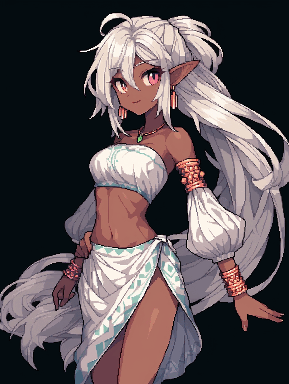 | 「書き出し部分を暗唱できる書物がいくつかある。」「己に何らかの誓を立てている(いた)」「命を助けられたことがある」 「名声を得るために」 --------------------------------------------------------------------------------------------- 【外見】 茶褐色の肌、白い髪の毛、桃色の瞳、そして長い耳を持つ黒エルフ。 【性格】 元気が良くみんなを引っ張る性格 ファッション大好き。 【経歴】 大家族の一員として生まれる。 父親や母親の冒険譚を聞かされてわくわくしている日々を送っていた ある人、遺跡の中に入って気付いたら そこは話に聞いた冒険の舞台ブランブルグ これは冒険をするしかない、剣じゃなくて歌でみんなを助ける冒険の始まり始まり。 |