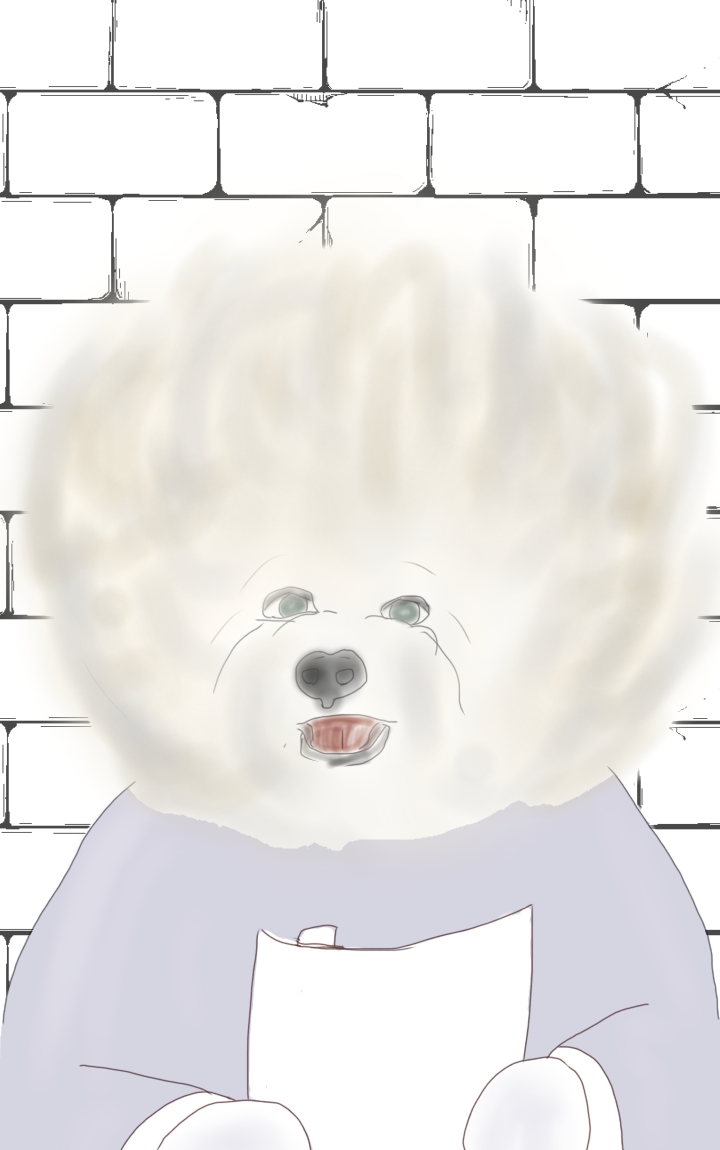 | フッサフサ綿飴のようなコボルド、元貴族神官の使用人 よく開拓村へ出向いた主人に付き従う内に名誉を集めた |