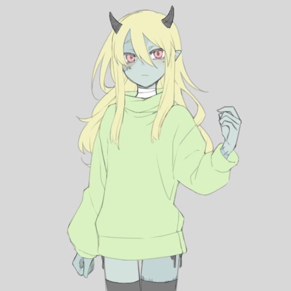 | 身長158cm、細やかな金の髪と赤い瞳を持つ少女。黒い紐ぱんがちら見している |